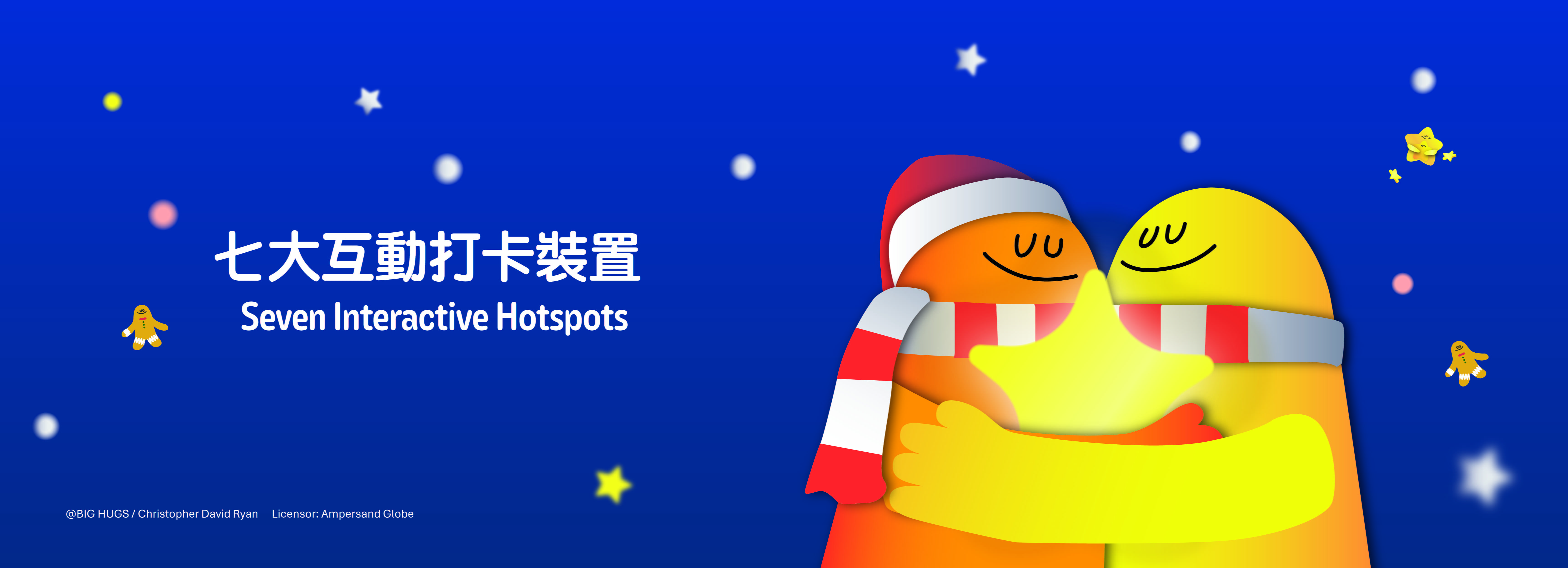 Kick off a heartwarming Christmas with a BIG HUG! In his first-ever Hong Kong appearance, the 2.5-meter-tall BIG HUGS Santa is waiting at the G/F entrance with a festive hat and open arms to greet everyone with FREE HUGS as the Hugging Star cheers you on with a “HUG HERE HUG NOW” sign!