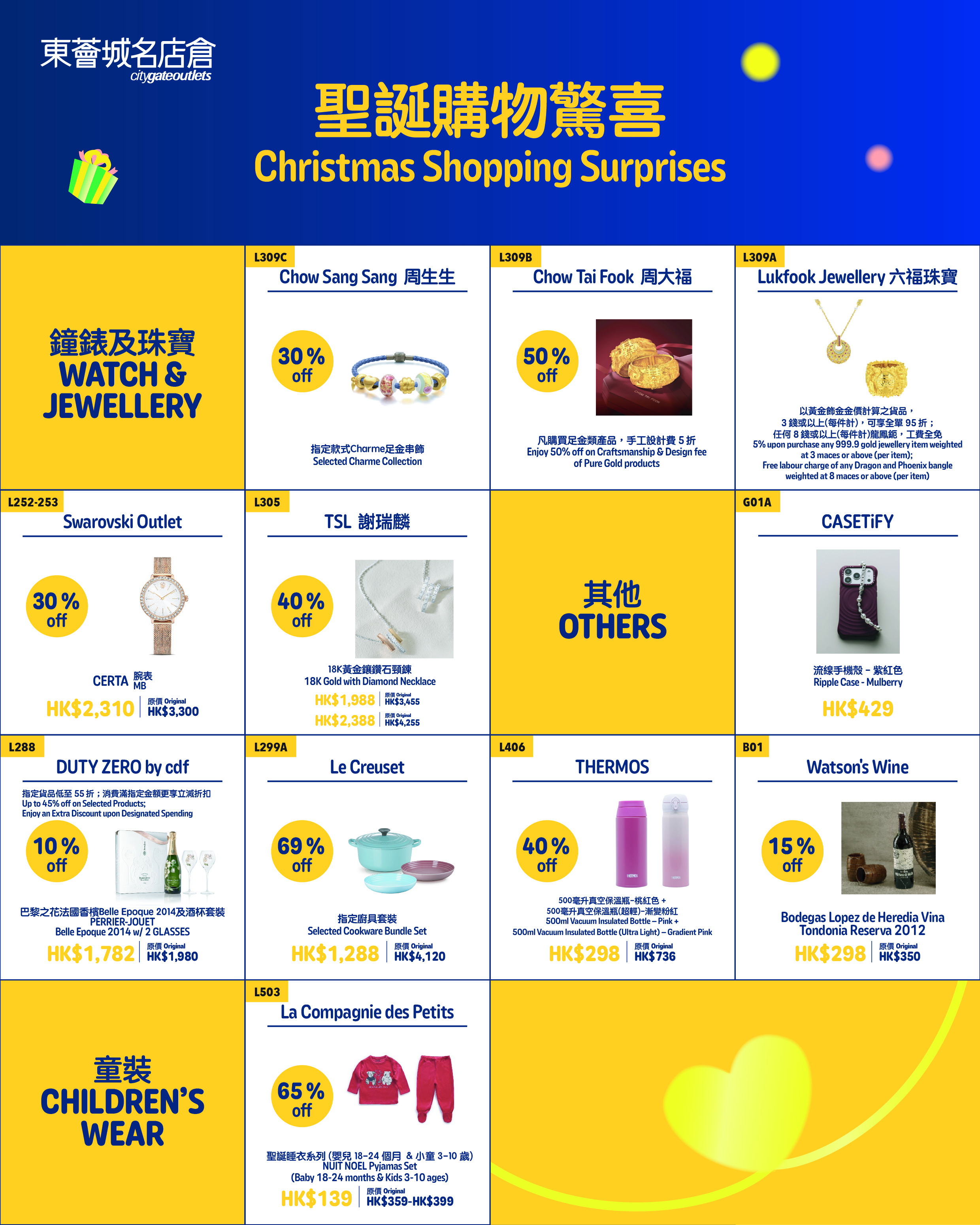 Over 50 merchants of Citygate Outlets are offering exclusive Christmas privileges. Delightful surprises await at every corner!