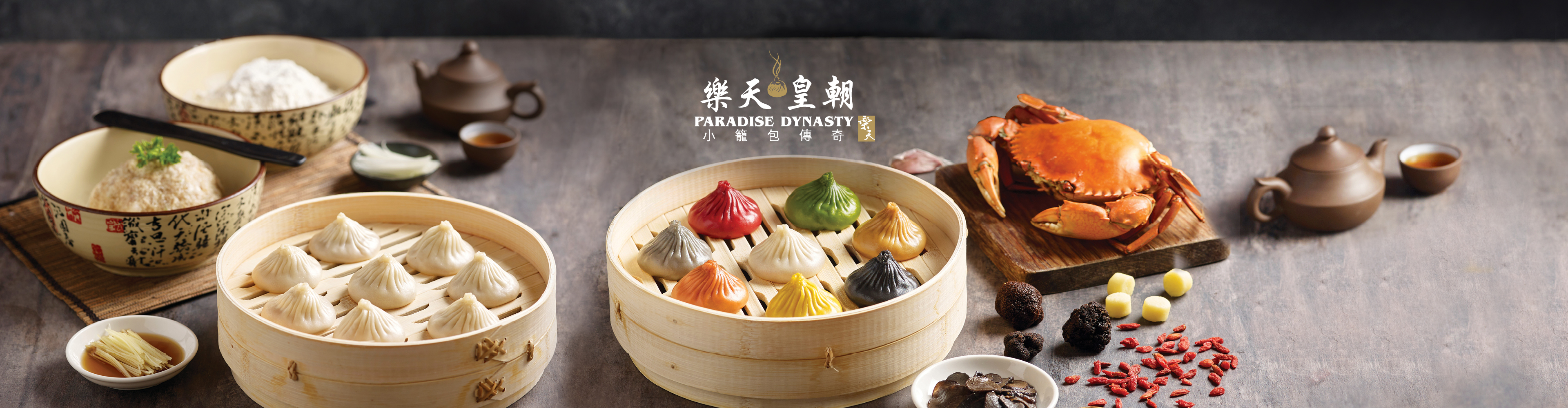 樂天皇朝是新加坡著名樂天餐飲集團最具代表性的概念餐廳,在現代的⾵格中捕捉展現舊日中國的皇朝時代⾵貌。餐廳提供精緻、創新的中國南北菜式、點心、拉麵、小籠包以及中國八大菜系最經典的菜餚,深受老饕喜愛。樂天皇朝獨創的八色小籠包不僅是一道美食,更是一門藝術,把別出心裁的八款獨特口味小籠包呈現給大眾,除了原味,還包括前所未有的蟹粉、芝士、 香蒜、糟溜絲瓜、川味以及頂級的鵝肝和黑松露。在創新佳餚及宏偉裝潢的互相配合下,樂天皇朝打造出耳目一新的感官與味覺盛宴。